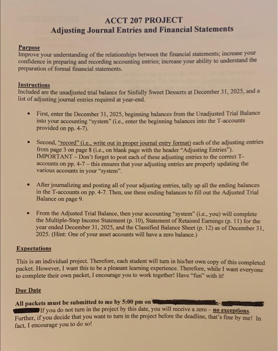 Solved Acct 207 Project Adjusting Journal Entries And Chegg Com
