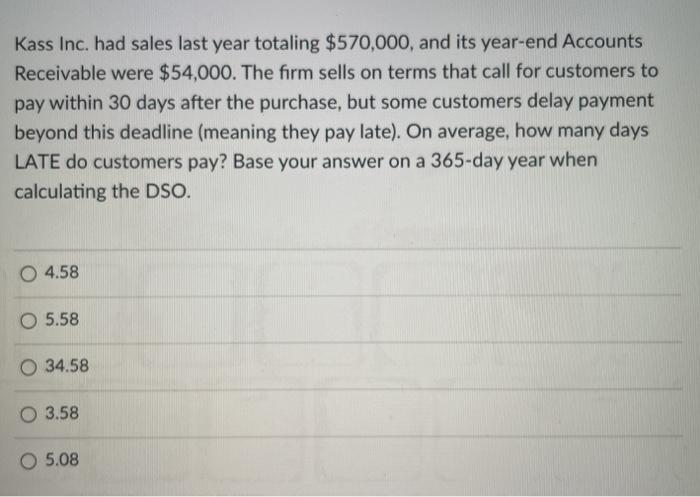 Solved Kass Inc Had Sales Last Year Totaling 570 000 And Chegg Com